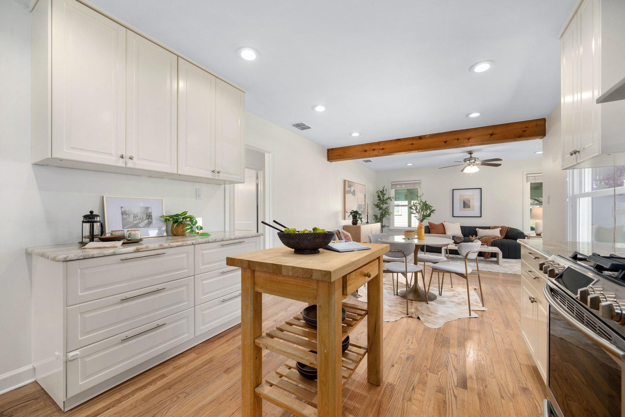 Set on one of Crestview's most admired streets, 1505 Pasadena is a home that feels thoughtfully updated while remaining true to its mid-century soul. Inside, modern updates enhance everyday living. The kitchen, remodeled in 2019, sits at the heart of the home with clean lines, generous workspace, and seamless connection to the living areas. A rare feature for the neighborhood, the true primary suite offers a walk-in closet and en-suite bath. The second bathroom features a refreshed vanity (2024) while preserving its original 1950 character with classic hexagon tile. Behind the scenes, the home has received substantial infrastructure upgrades: new ducting and air conditioning system with new attic insulation (2021), modern double-pane windows, tankless water heater (2021), and a new metal roof (2025). Outdoors, multiple garden beds with drip irrigation create a productive growing environment. A mature fig tree and two plum trees grace the backyard, while two exceptionally productive pecan trees anchor the front yard. A shaded patio beneath a mature tree offers a natural gathering space, framed by fenced front and back yards (sellers are happy to paint the front fence all black). Adding versatility is a detached, air-conditioned 200-square-foot studio built in 2022 (not included in the home's square footage) with tall ceilings and a large storage closet, ideal for a home office or creative space. The detached garage includes a modern easy-lift roll-up door, and the rebuilt carport with added concrete pad and improved access (2022) enhances daily functionality. Beyond the front gate, Crestview delivers the lifestyle that makes central Austin living so compelling, with Michelin-recognized Barley Swine plus Bufalina Due, Little Deli, Violet Crown, Fresh Plus, Foxtail, and Alamo Drafthouse all nearby. This is a home that doesn't try to impress loudly. It reveals itself through smart improvements, rare features, and a neighborhood that quietly elevates daily life.