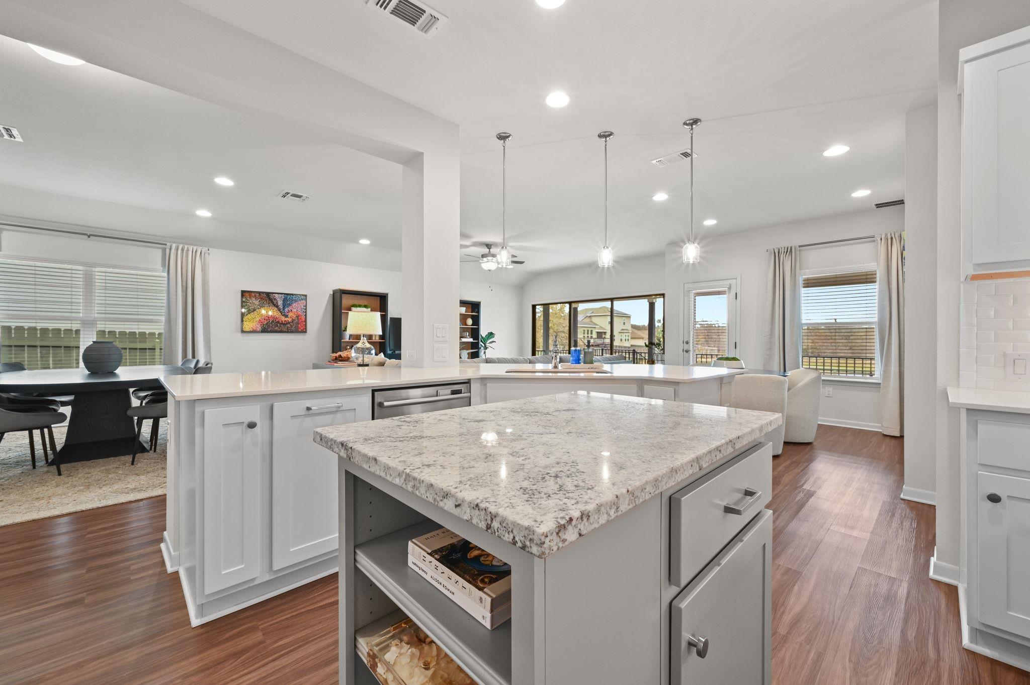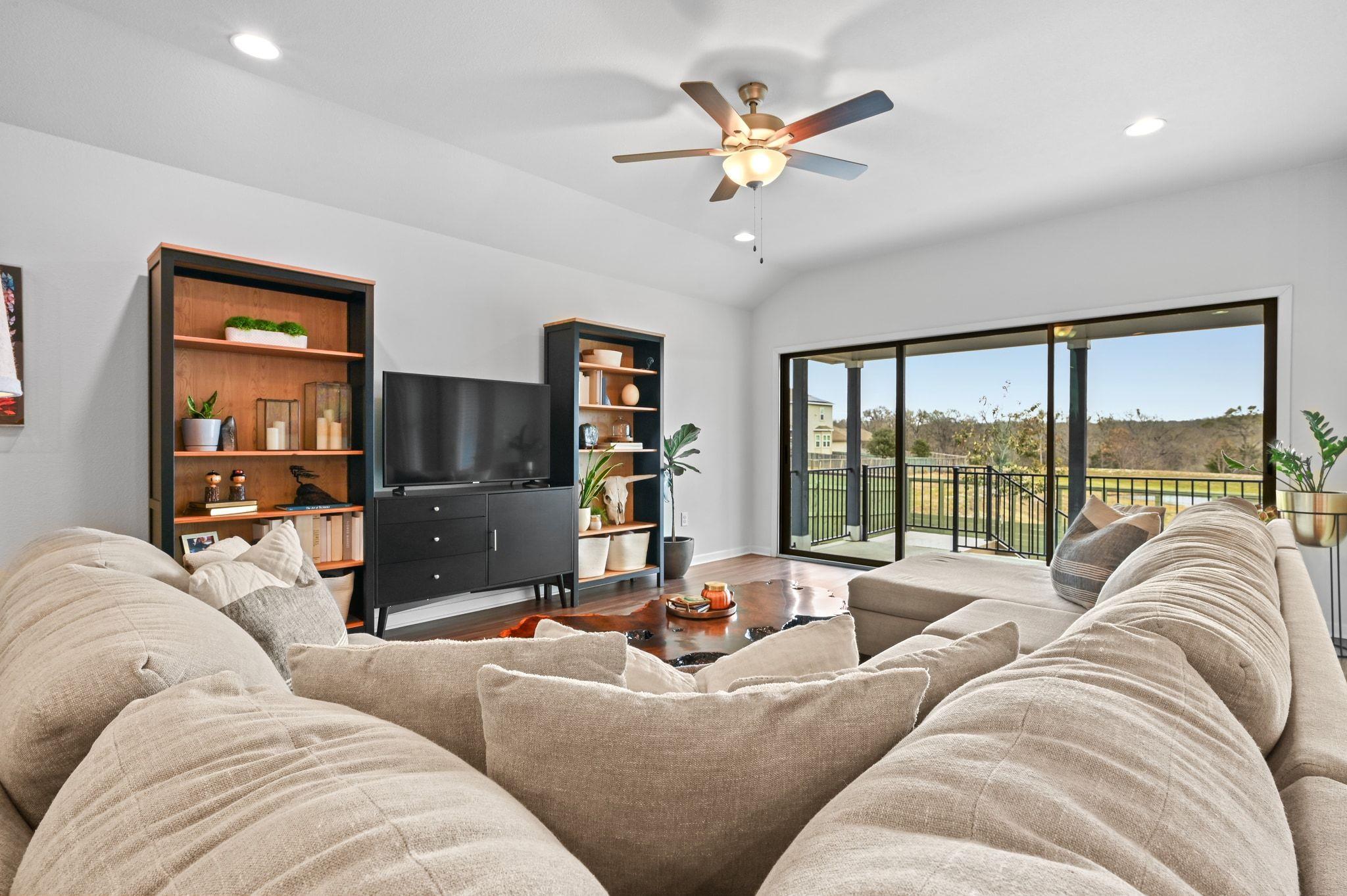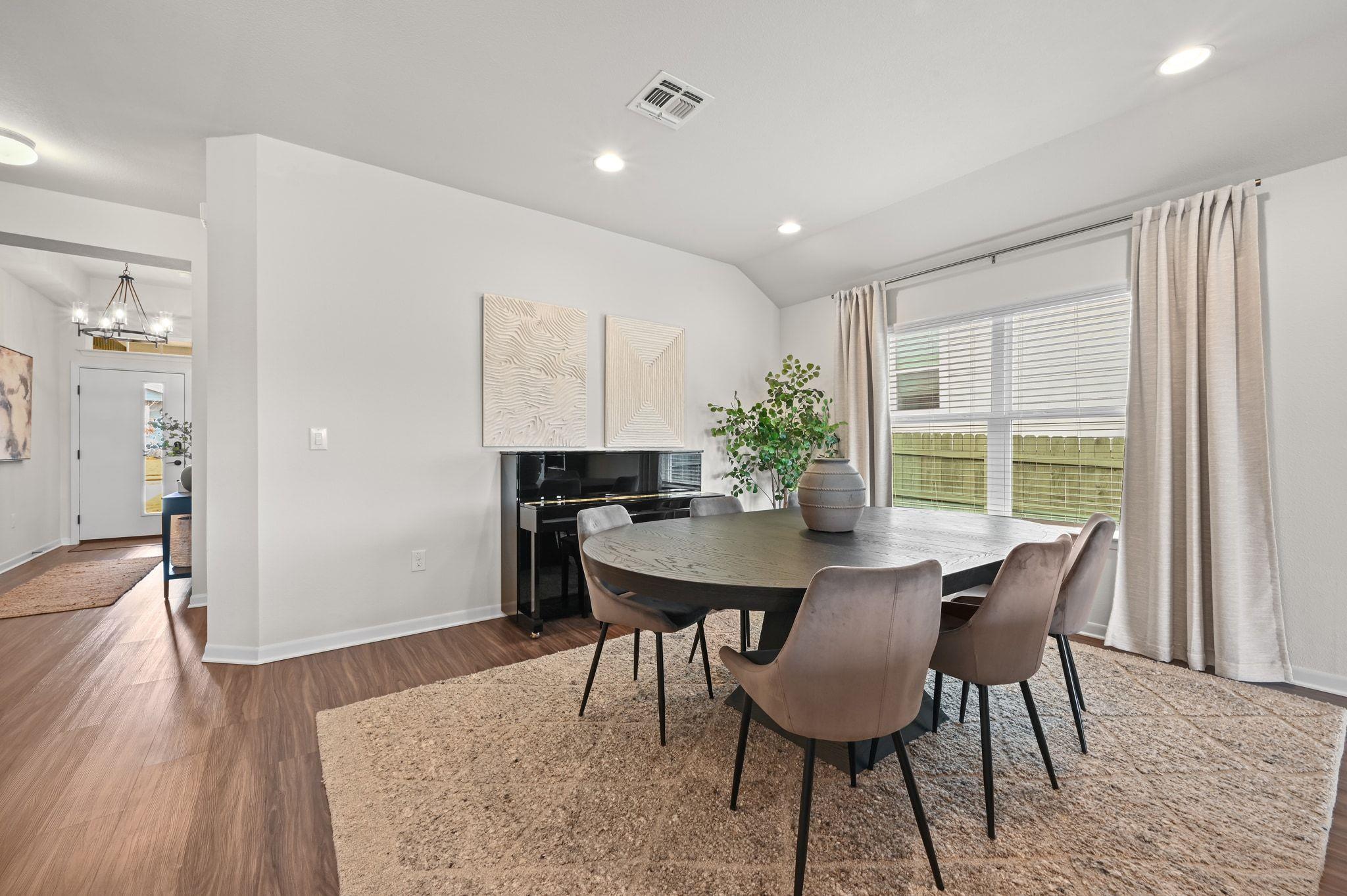 This rare single-story home offers a location that can't be beat in the highly sought-after, master-planned Whisper Valley community. Perfectly positioned on the largest available lot size (60-foot), this home is one of only 7 in the community which backs to the greenbelt & tranquil pond - offering privacy & natural beauty. Owners have elevated above the standard builder specs to include upgraded cabinetry, modern hardware, light fixtures, & a completely renovated guest & primary bathroom (see attached list of upgrades). Additionally, the home includes vinyl plank flooring, quartz countertops, & Bosch kitchen appliance upgrades. The kitchen flows effortlessly into the main living space & opens to the extended patio through a three-panel sliding glass door, while the primary bedroom bay windows enhance natural light & peaceful views. Outdoor living shines w/ the extended patio, ideal for entertaining or enjoying peaceful mornings overlooking the pond. Functionality & curb appeal have been equally prioritized with new gutters, freshly painted fencing, & custom landscaping. The home is also zero-energy capable, featuring owned solar panels & a geothermal system that provide exceptional energy efficiency & meaningful long-term cost savings--an increasingly rare & valuable advantage. Located just 2 doors down from the mailbox & pocket park, this home is perfect for a community forward lifestyle. Beyond the home itself, Whisper Valley offers a truly unmatched community experience, spanning over 2,000 acres w/ hundreds of acres dedicated to parks, greenbelts, lakes, & miles of scenic hike-and-bike trails. Residents enjoy a resort-style pool, a state-of-the-art fitness center, playgrounds, dog parks, & organic community gardens, along w/ a full calendar of lifestyle programming.