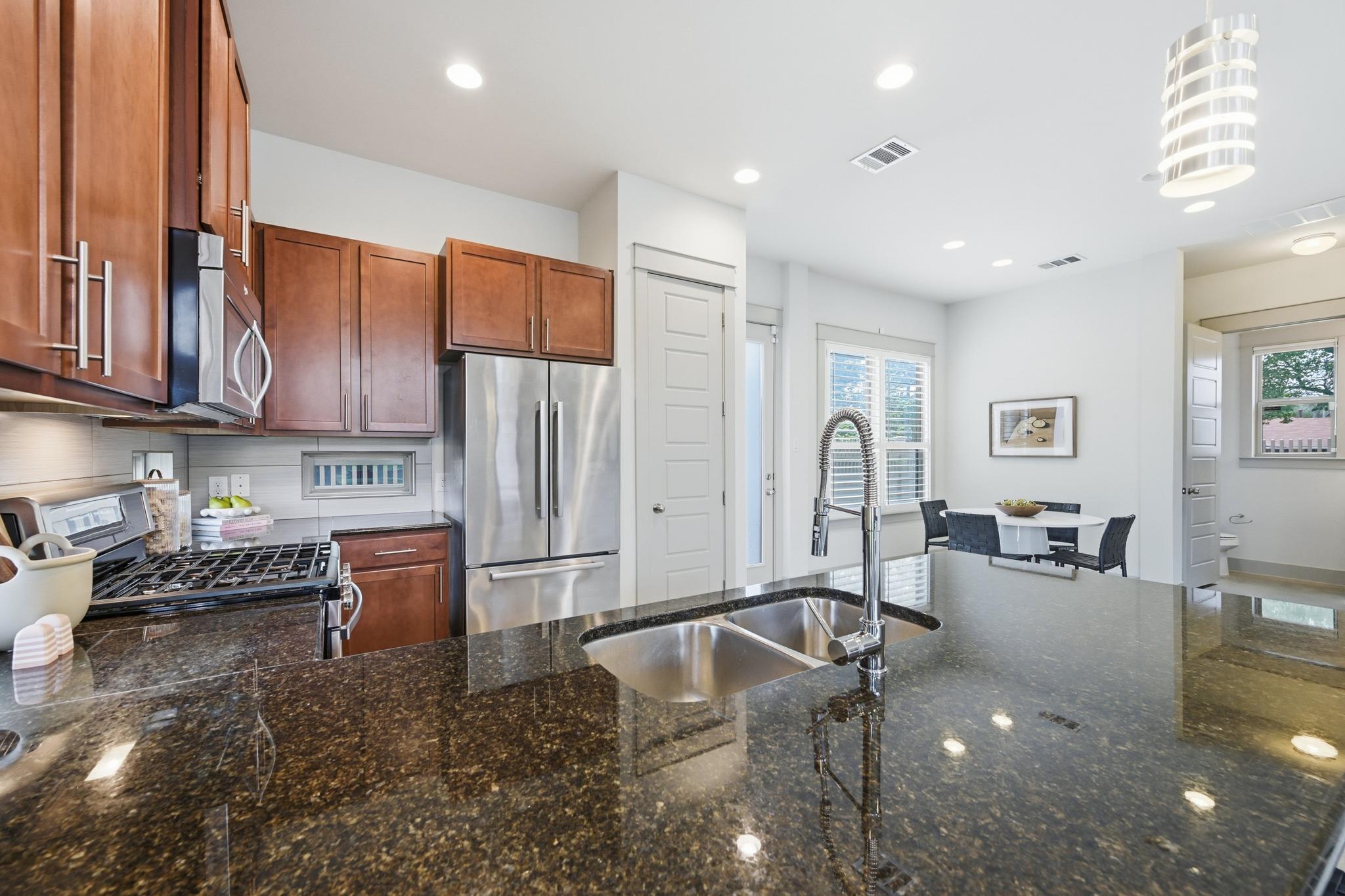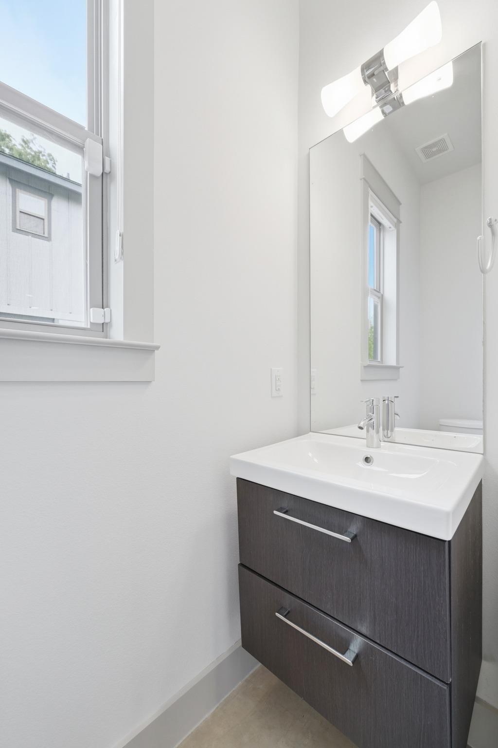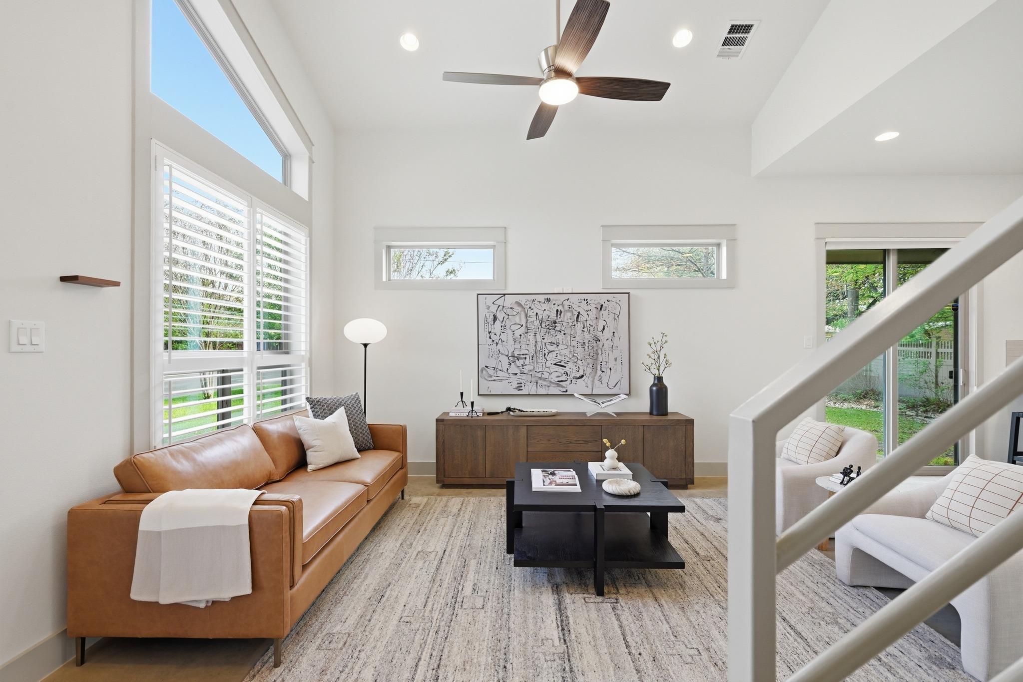 Set on a corner lot in the heart of Crestview, 1917 W Saint Johns #A is a confident expression of modern Austin living, where clean architectural lines meet a warm, highly livable design. This newer construction home offers an open floor plan featuring soaring ceilings, and an abundance of thoughtfully placed windows that fill the home with natural light throughout the day. The kitchen strikes a smart balance between form and function, featuring granite countertops, a tiled backsplash, stainless steel appliances, gas cooking, a generous pantry, and a breakfast bar that keeps the space social and connected. Plantation shutters add texture and refinement. The primary bedroom is a true retreat, complete with an en-suite bathroom and a large walk-in closet, offering both privacy and everyday ease. Outdoors, a private and spacious backyard is paired with low-maintenance, low-water landscaping and a full sprinkler system, creating a setting that's easy to enjoy and easy to maintain. What truly elevates this address is its place within Crestview's daily rhythm. This is a neighborhood defined by walkability and long-standing local institutions rather than trends. Lunch is an easy stroll or short drive to Little Deli & Pizzeria, a Crestview staple known for its unfussy excellence and loyal following. Evenings slow down just as naturally at Violet Crown Wine & Coffee Bar. It's an easy stroll to the Michelin-starred Barley Swine, Bufalina Due and Foxtail for elevated cocktails. Black Pearl Books offers a quietly wonderful place to browse, linger, and leave with something unexpected. For green space, Brentwood Park sits just to the south, providing shaded lawns, walking paths, open fields, and a playground that feels woven into everyday life rather than set apart from it. From this address, you're just minutes to The Domain and roughly fifteen minutes to Downtown Austin, yet firmly rooted in a neighborhood that values consistency, character, and a life well lived close to home.