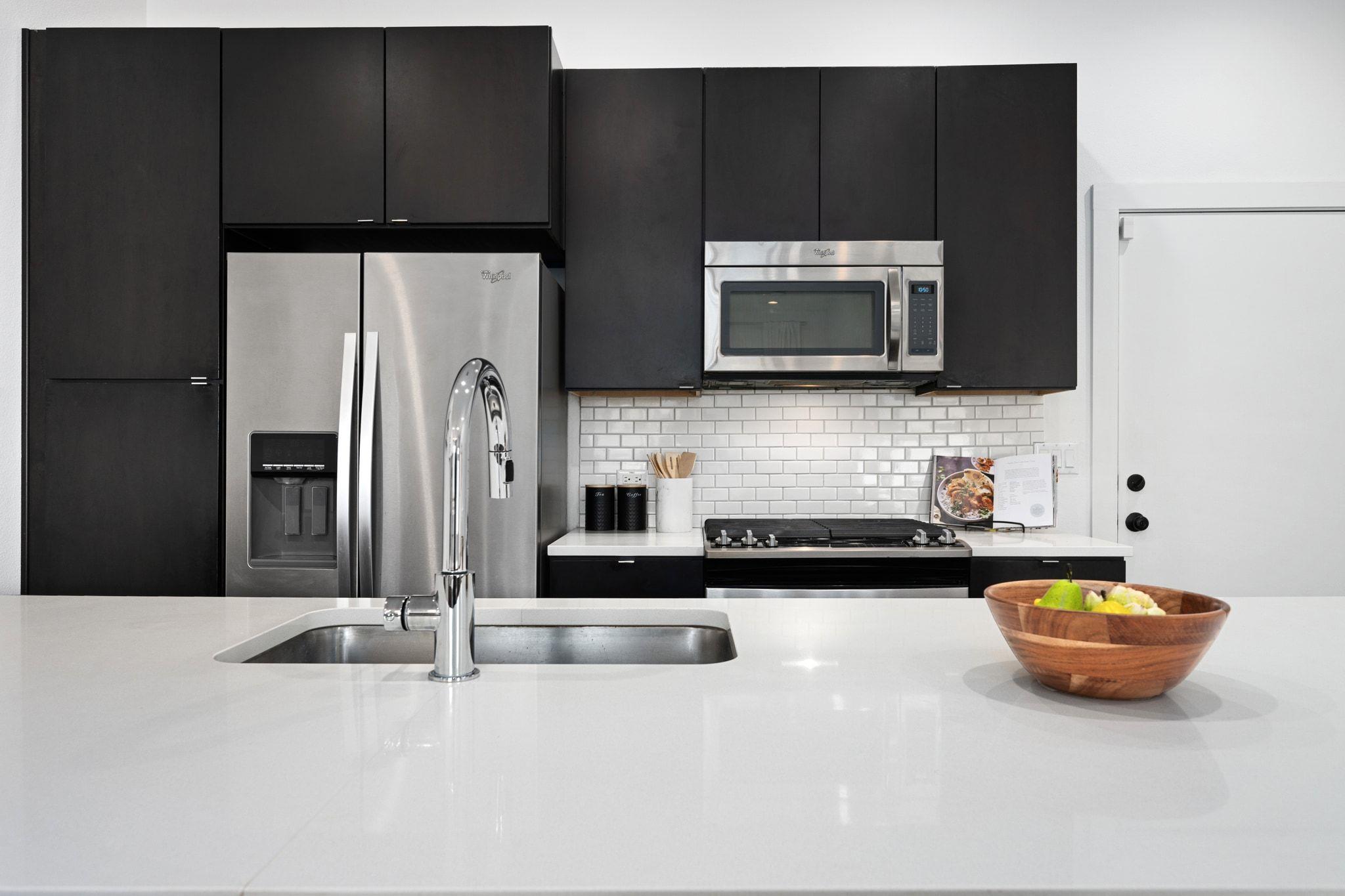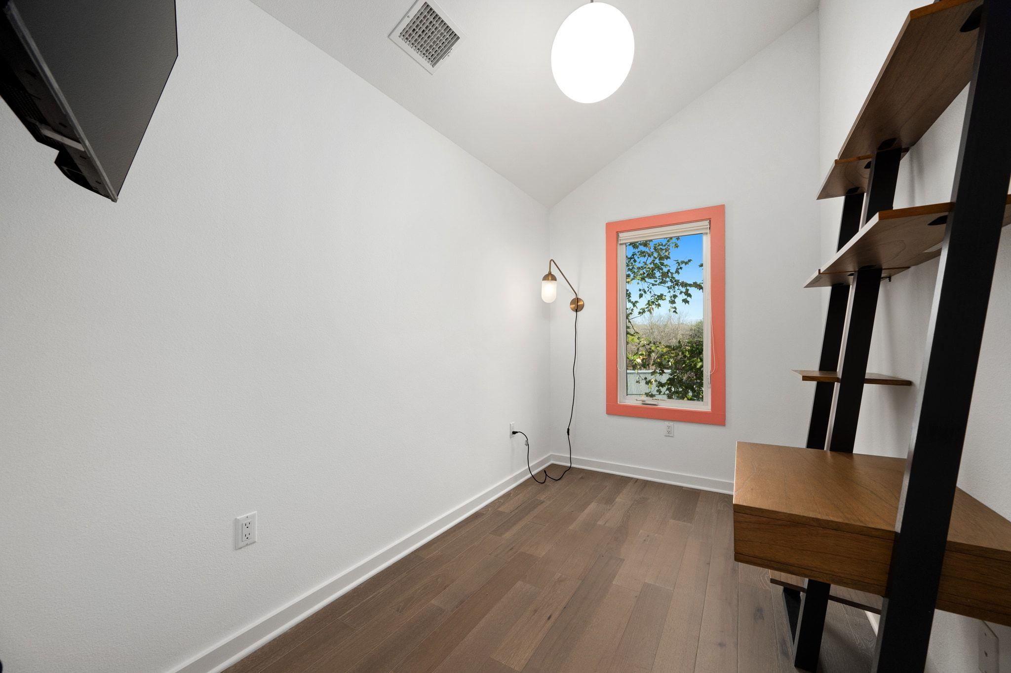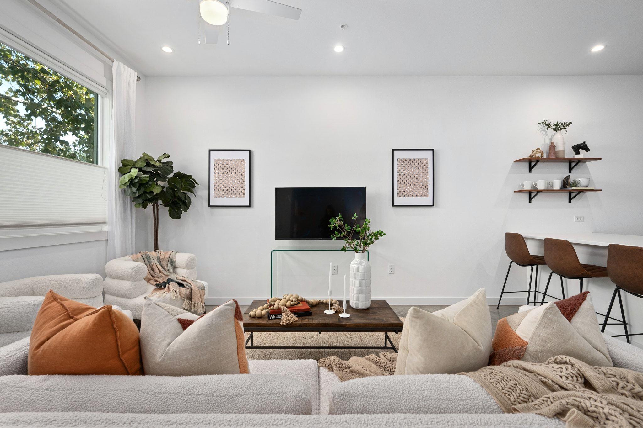 Set in the heart of Avion Park, 1931 E 38 1/2 St #43 delivers contemporary design, effortless livability, and one of Mueller's most enviable front-row positions across from the 32-acre Southwest Greenway. Step outside and you're moments from acclaimed restaurants, boutique shopping, the Mueller Farmer's Market, and everyday conveniences, all wrapped in the rare luxury of true walkability. Inside, the home unfolds in clean architectural lines and light-filled volume. Soaring ceilings, polished concrete floors, and expansive windows create an airy, modern atmosphere that feels both intentional and inviting. The kitchen anchors the main level with quartz countertops, stainless steel appliances, a gas range, subway tile backsplash, and sleek cabinetry with built-in pantry storage. A generous peninsula provides a natural gathering point for casual meals or evening conversation. Upstairs, the primary suite is a serene retreat with vaulted ceilings, oversized windows, a spa-inspired bath, and a spacious walk-in closet. A secondary bedroom is complemented by a versatile third flex space, ideal for a home office, studio, or additional sleeping area. An upstairs laundry closet and main-level powder room add everyday ease. The lock-and-leave lifestyle is enhanced by beautifully maintained grounds, a community dog park, and HOA coverage that includes water, wastewater, trash, structural insurance, and common-area maintenance. An attached two-car garage completes the package. Just four miles from Downtown and minutes from UT, this residence offers a rare blend of urban energy and greenbelt tranquility. A refined, low-maintenance home in one of Austin's most sought-after condo communities.
