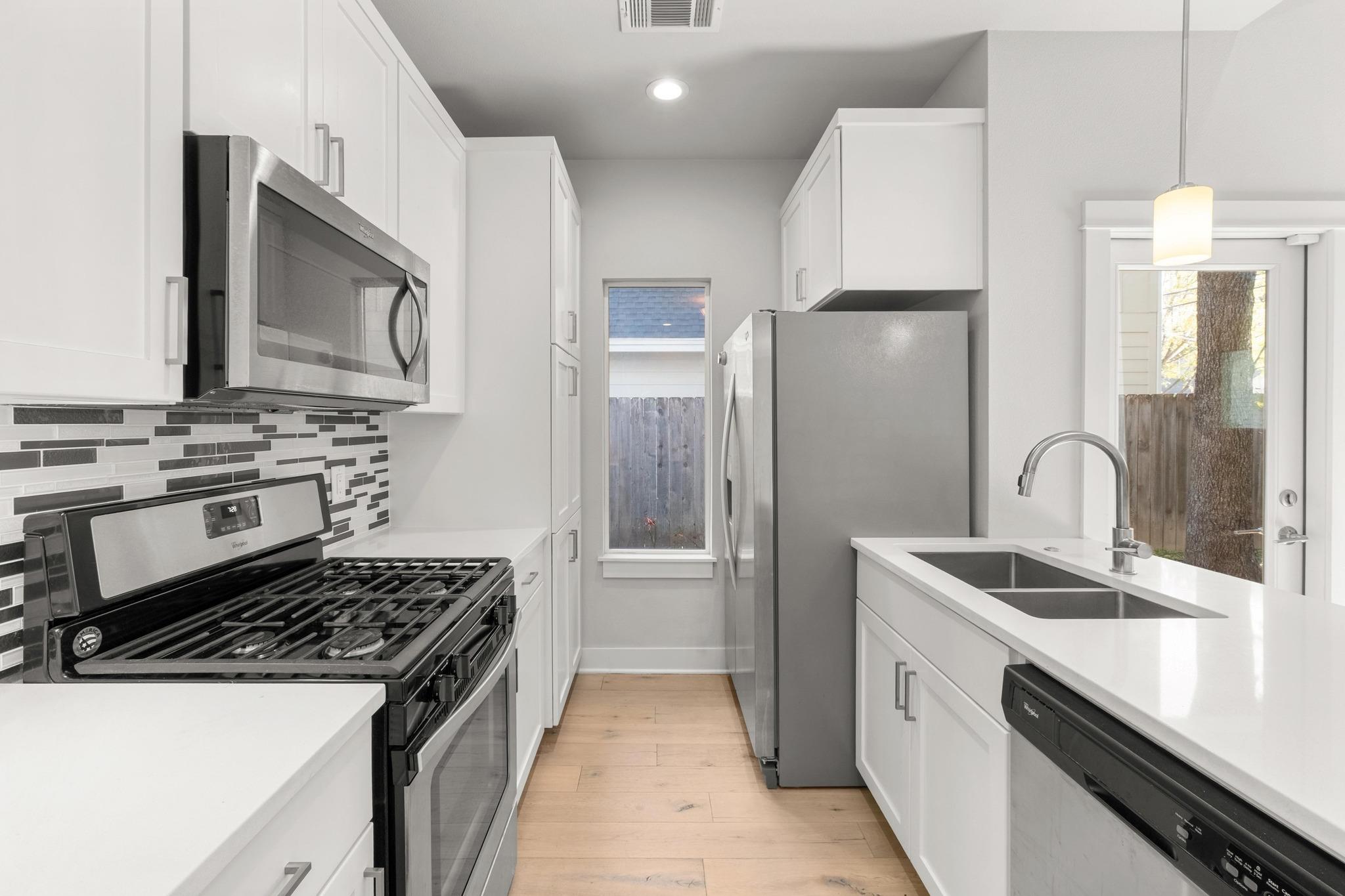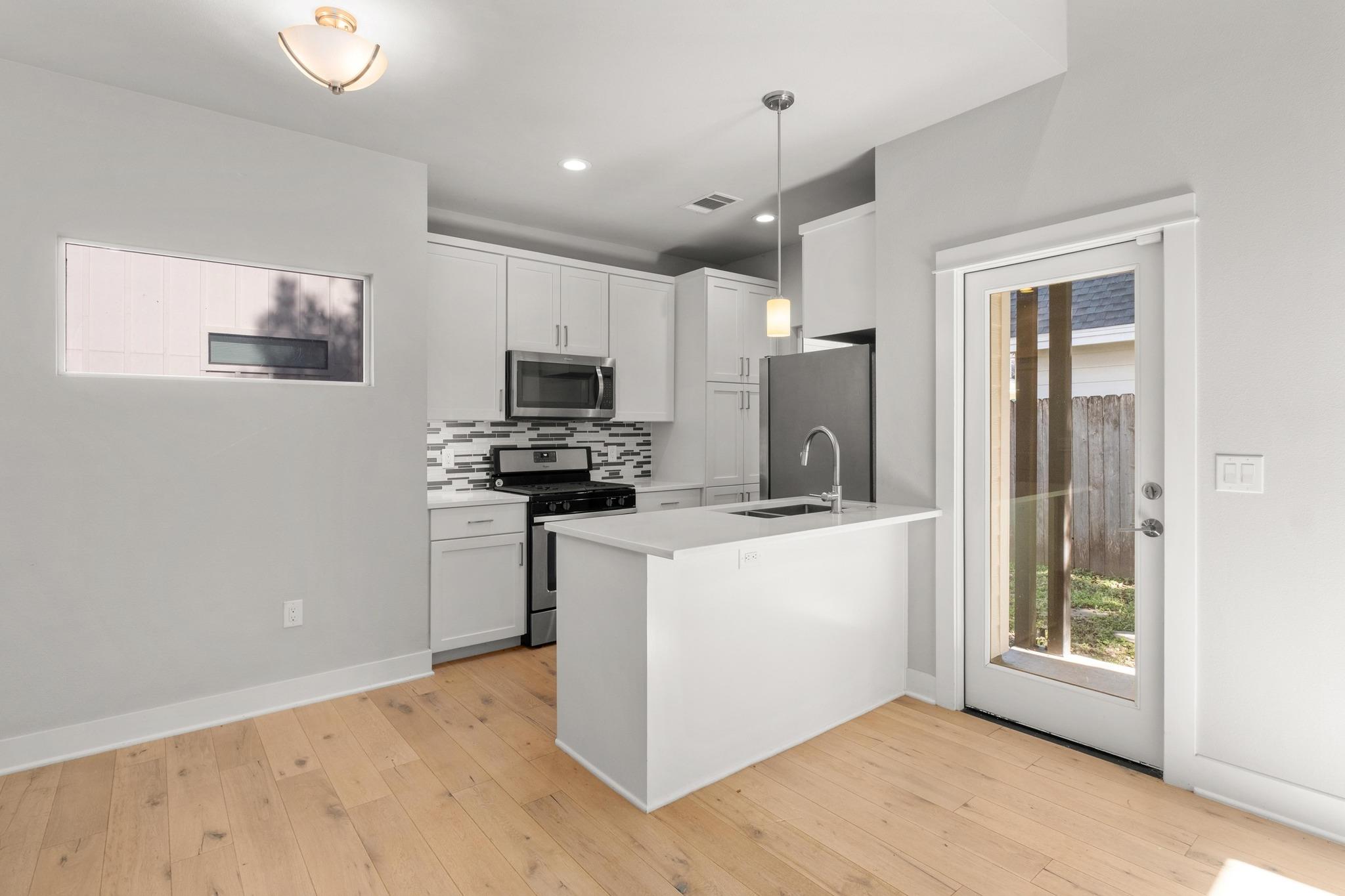 Tucked away in the vibrant Holly neighborhood, this stylish two-story home blends modern comfort with East Austin charm. Featuring an open-concept living area, abundant natural light, and sleek finishes throughout, it's designed for easy living and entertaining. The well-appointed kitchen boasts stainless appliances, quartz countertops, and custom cabinetry. Upstairs, spacious bedrooms offer privacy and comfort, including a bright primary suite with a walk-in closet and spa-like bath. Enjoy warm evenings on the private fenced yard or take a short stroll to Launderette, Juan in a Million, Lady Bird Lake, and the East Cesar Chavez corridor -- all just minutes away. With approx. 845 sq ft of living space, this home lives large and efficient. Additional highlights include: garage, ample storage, and low-maintenance landscaping. Perfect for those seeking a turnkey home in one of Austin's most walkable and creative districts.