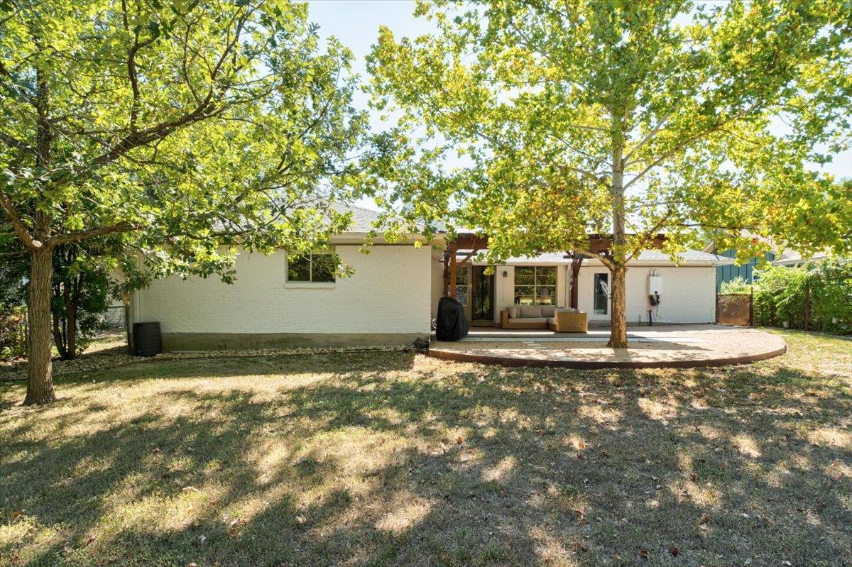 Welcome to 7309 Bucknell Drive, a charming single-story ranch in the sought-after University Hills neighborhood of Austin. Set on a spacious lot, this 4-bedroom, 2-bath home offers vaulted, beamed ceilings, walls of windows that fill the interiors with natural light, and multiple living spaces centered around a cozy fireplace. The dreamy backyard overlooks lush greenspace and features a covered patio perfect for entertaining and a cowboy pool that can convey. Recent updates include a new air conditioner (2022), new carpeting in the primary bedroom and nursery, fresh interior paint, and a beautifully landscaped front and back yard, along with modern appliances such as a new dishwasher, oven, and washing machine (2024) Combining timeless character with thoughtful upgrades.