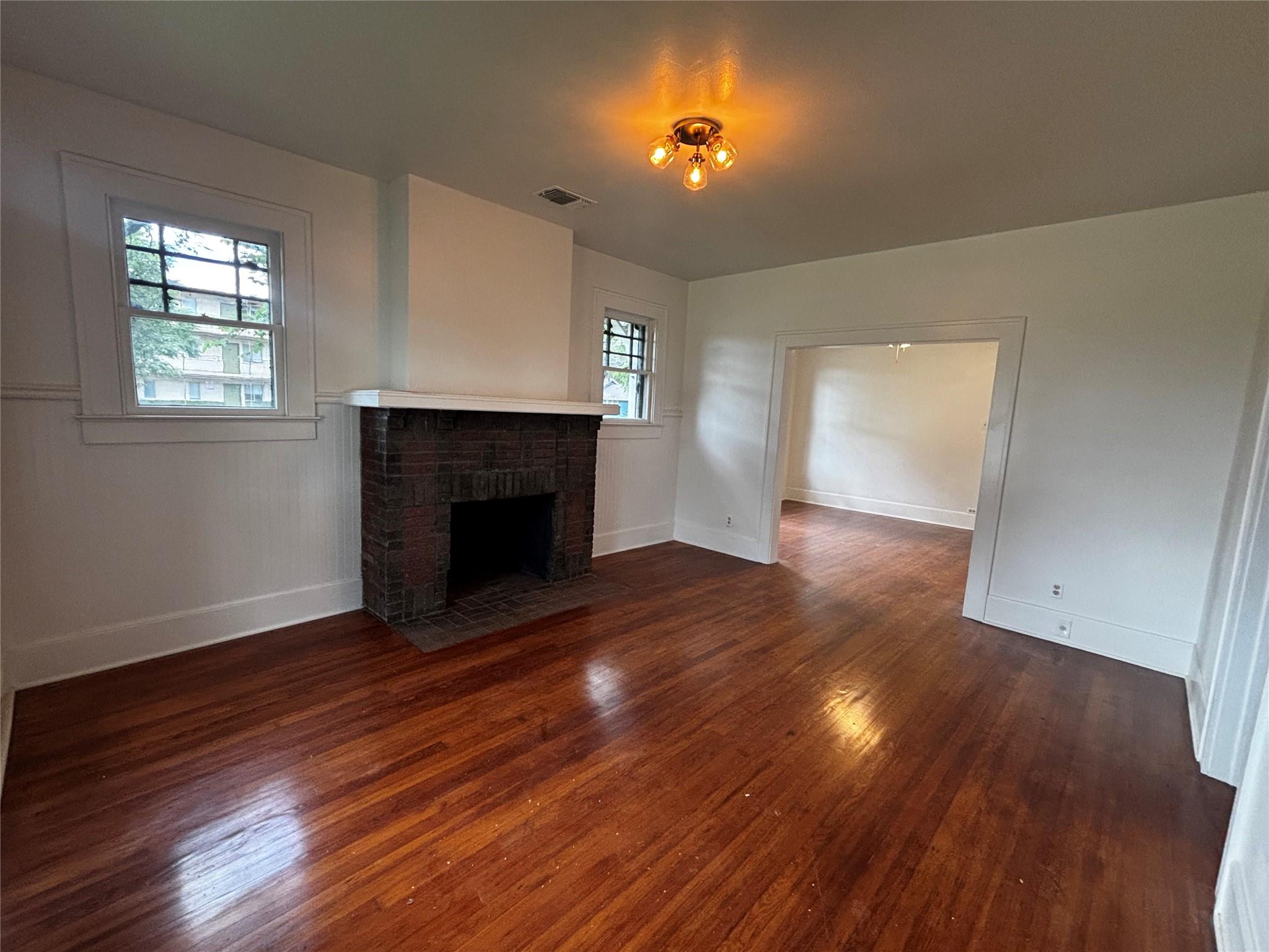The main building features gorgeous hardwood floors, an eye-catching fireplace that anchors the living space, and a wide, welcoming front porch perfect for lazy afternoons or connecting with neighbors. Every detail nods to its architectural roots while offering the comforts of modern living.