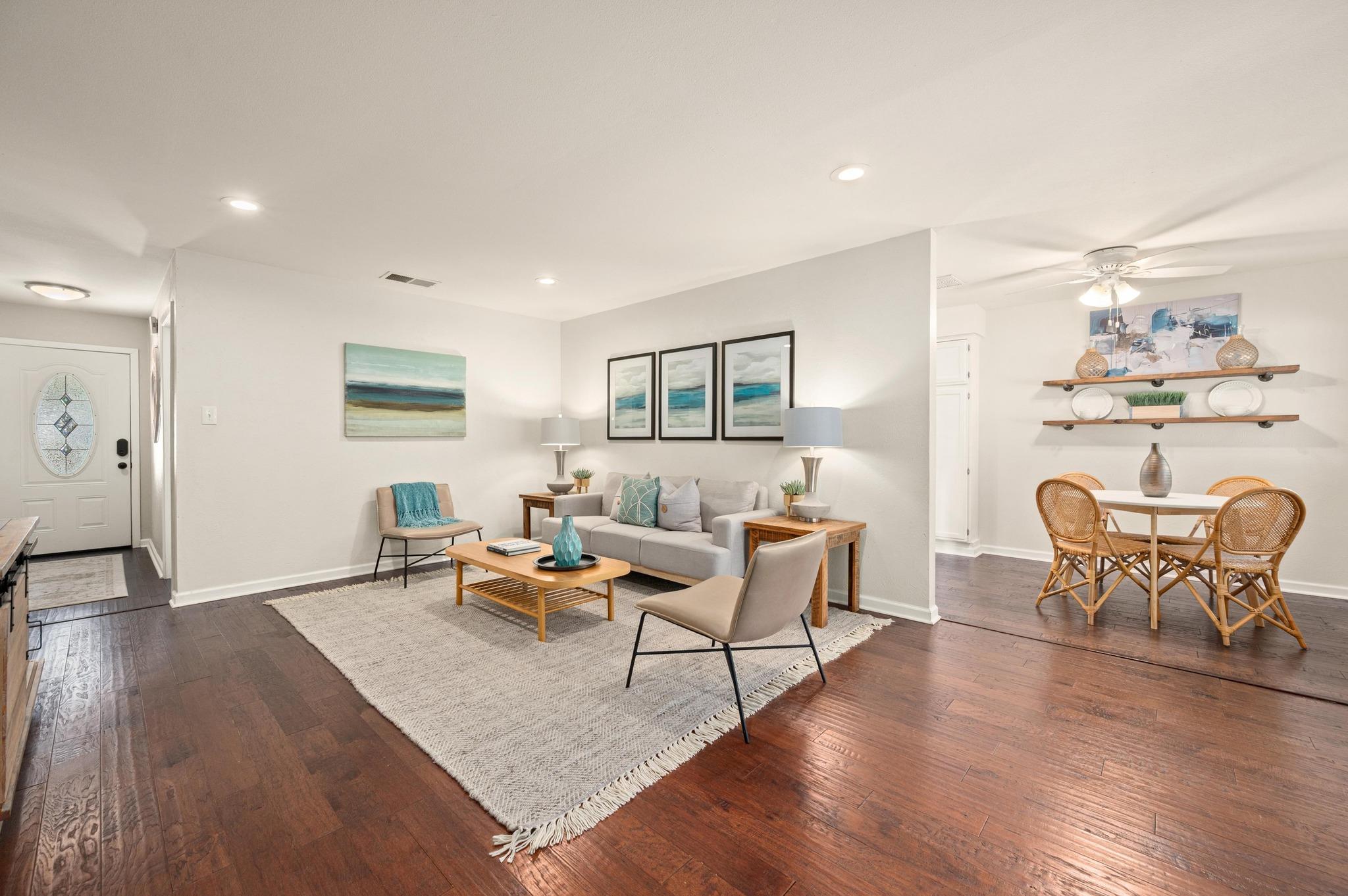 This well-maintained and rare 4-bedroom home is centered in the highly desirable Mesa Park neighborhood of North Austin. Hardwood floors run through the main living areas, dining space, and primary bedroom, creating a warm, cohesive feel throughout.