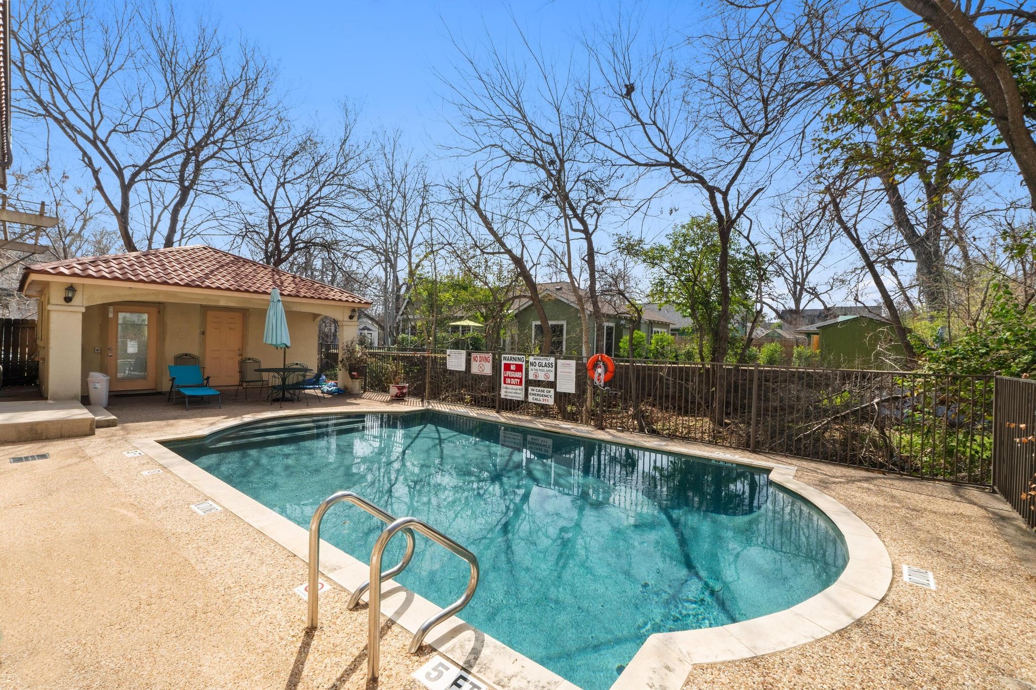 Outside your door, relax and unwind at the community pool -- ideal for cooling off on warm Austin afternoons or gathering with friends.