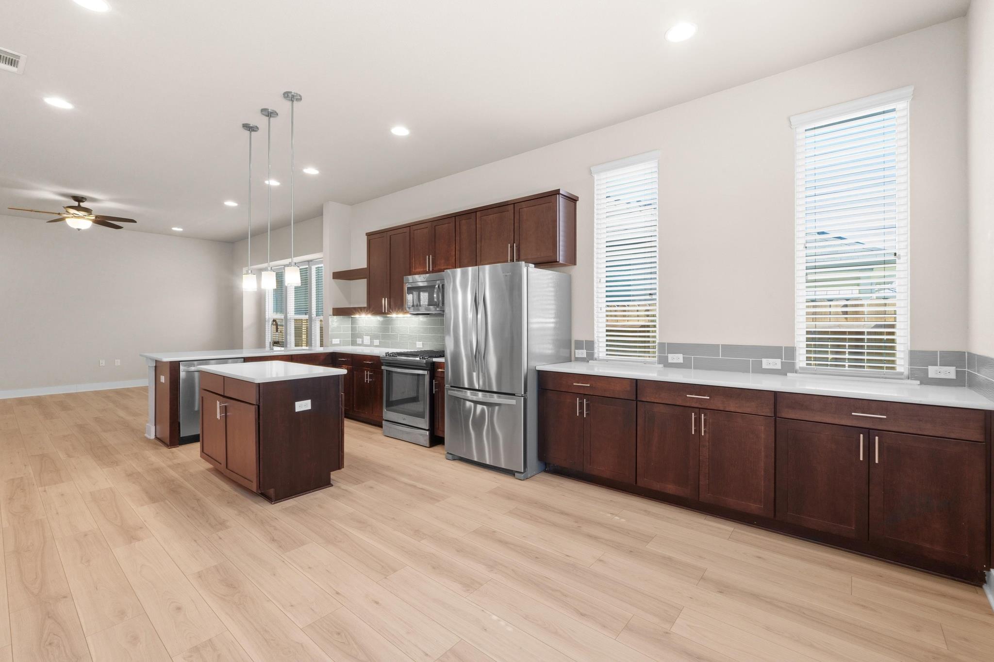 The kitchen, crowned with granite forged by geological time, is filled with natural light--courtesy of our nearest star. Out back, a spacious patio and greenbelt setting provide privacy and a daily reminder that nature still frames the human experience.