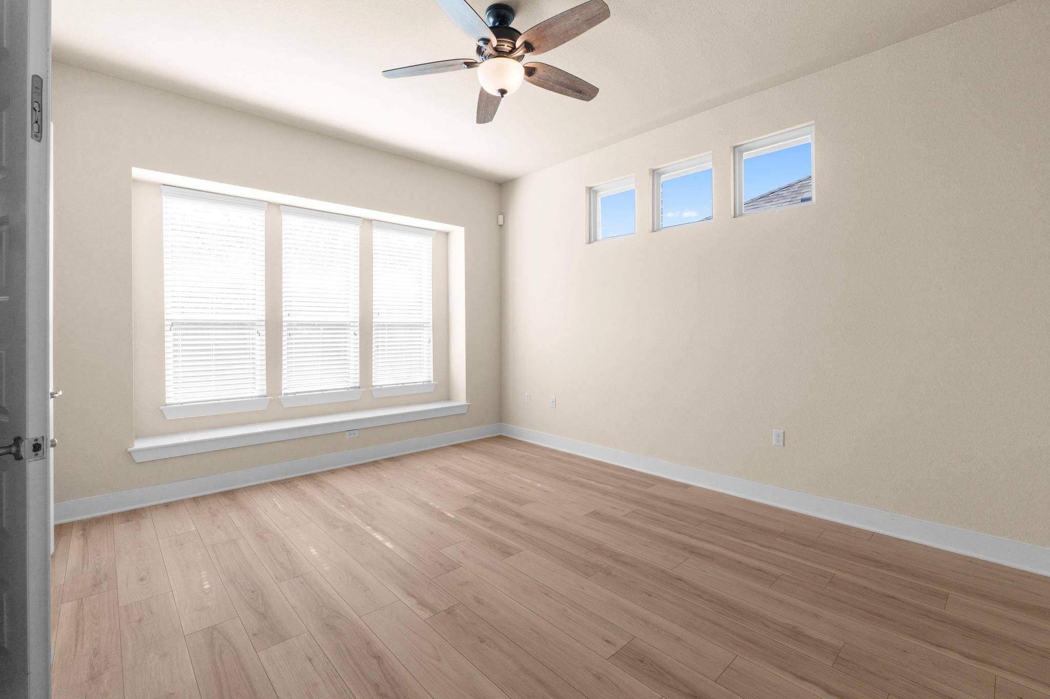 The stone-and-brick exterior signals durability--matter arranged with purpose. Inside, high ceilings and an open-concept layout create volume and flow, while wood plank flooring--no carpet anywhere--offers sleek continuity underfoot.